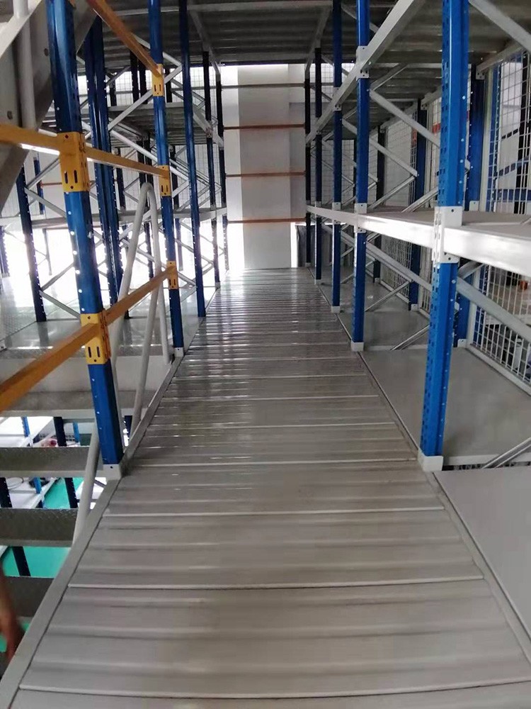 閣樓貨架系統(tǒng),通常利用中型擱板式貨架或重型擱板式貨架作為主體支撐加上樓面板(根據(jù)貨架單元的總負(fù)載重量來決定選用何種貨架),樓面板通常選用冷軋型鋼樓板、花紋鋼樓板或鋼格柵樓板。