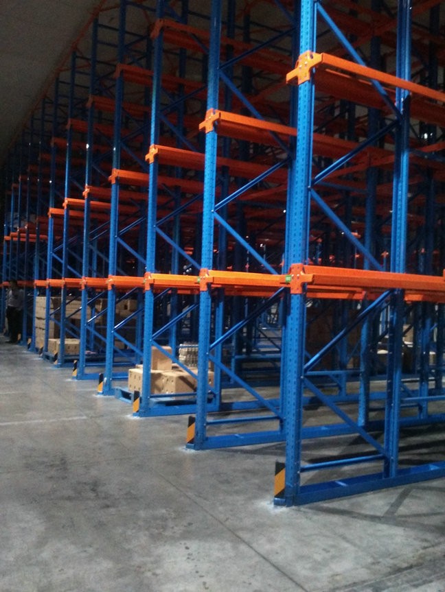 貫通式貨架:是一種不以通道分割,連續(xù)性的整體性貨架;貫通式貨架采用托盤存取模式、適用于存放品種單一,大批量的貨物;與托盤貨架相比、倉庫利用率可達(dá)到80%左右,倉庫利用空間率可提高30%以上,是存儲效率高的貨架。在支撐導(dǎo)軌上,托盤按深度方向存放,一個緊接著一個。投資成本相對比較低,適用于橫向尺寸較大,品種較少,數(shù)量較多,常用來儲存大批相同類型貨物,由于其存儲密度大對地面空間利用率較高,常用于冷庫、食品、煙草等存儲空間成本較高的倉庫。