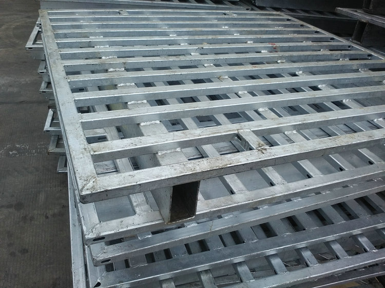 熱鍍鋅鋼托盤(鋼制托盤)是傳統木托盤、塑料托盤的理想換代產品,適合叉車作業(yè),存取貨物方便. 主要用于多用途的地面存儲、貨架存儲及貨物聯運、周轉等超輕金屬托盤系列。集裝、堆放、搬運和運輸的放置作為單元負荷的水平平臺裝置。是現在工業(yè)重要的倉儲與運輸輔助設備之一。 主要材料為鋼材或鍍鋅鋼板,經專用設備成型,各種型材互相支撐,鉚釘連接加強,再經CO2氣體保護焊焊接而成。